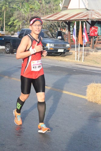 ผมไม่เคยคิดลงแข่งงานวิ่งเลย จนมาวันนึงคุณหลุยส์เพื่อนที่เริ่มวิ่งพร้อมๆกันได้ชวนให้ลงวิ่งมินิครั้งแรก งานของสมาคมธรรมศาสตร์ Thailand International Half Marathon สมัครไปโดยคิดว่าจะให้เป็นเป้าหมายเล็กๆของปีนี้ วิ่งไป 1.23 ชม. เหนื่อยแบบสุดๆ