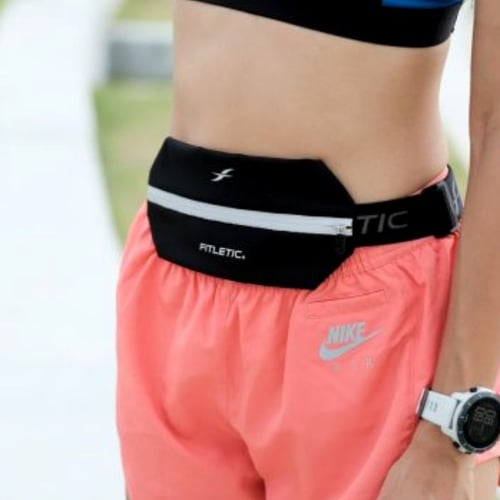 Fitletic Mini Sport Plus Belt สายคาดเอวสำหรับวิ่งออกแบบมาสำหรับใส่โทรศัพท์มือถือ บัตรเครดิต ธนบัตร และของใช้ที่จำเป็น ทำจาก Lycra เคลือบกันน้ำ ทนฝน ทนเหงื่อ และมีแถบสะท้อนแสง แนบกระชับไม่เด้งไปมา เหมาะสำหรับใส่วิ่ง, Walkers, ปั่นจักรยาน และใส่ออกกำลังกายในฟิตเนส