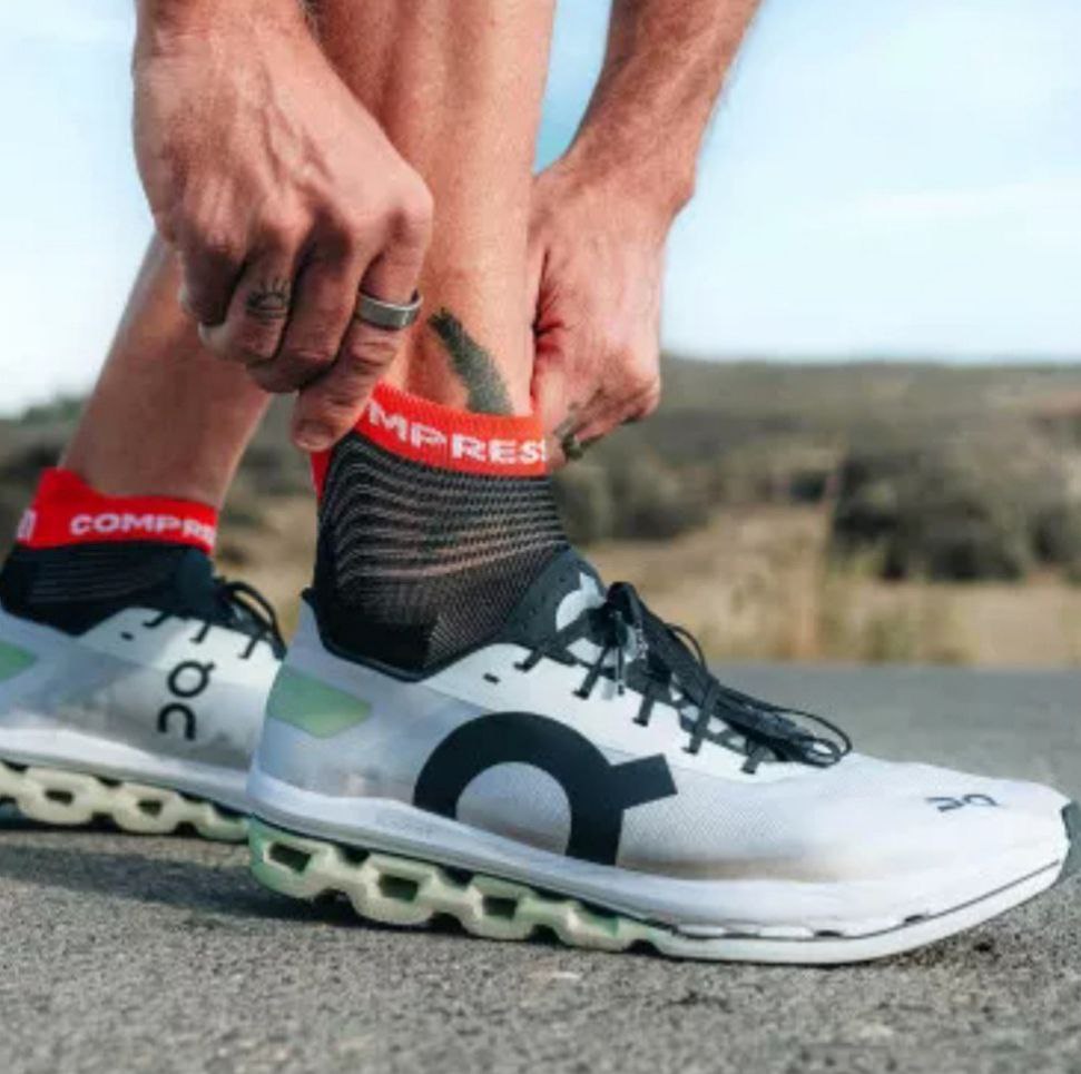 ถุงเท้า Compressport Pro Racing Socks V4.0 Low Cut (Black Core Red -T.2)