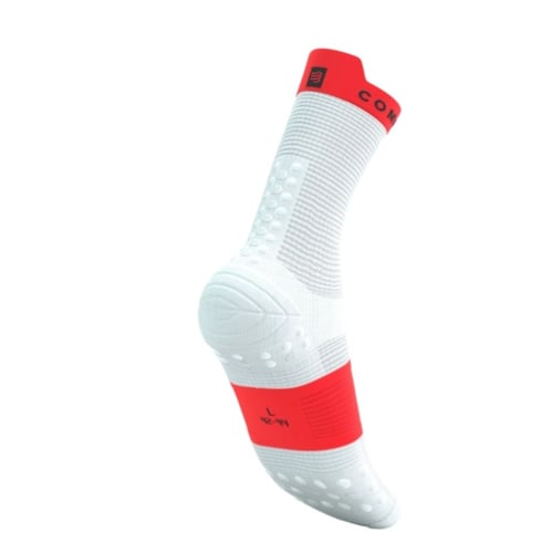 ถุงเท้า Compressport Pro Racing Socks V4.0 Run High (White Fluo Red -T.2 ( 39-41 ))