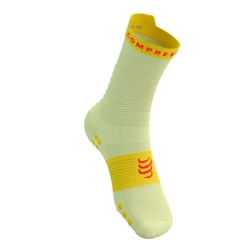 ถุงเท้า Compressport Pro Racing Socks V4.0 Run High (Elf Yellow Fluo Red -T.4 ( 45-48 ))