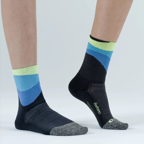 Feetures Elite LC Mini Crew Sock ถุงเท้าวิ่งคุณภาพสูงสำหรับใส่ออกกำลังกาย อีกระดับของความกระชับ เบา ระบายอากาศ เหงื่อ และความชื้น ให้คุณกระชับพร้อมความสบาย ด้วยระบบ Sock-Lock™ support system ทำให้ถุงเท้าคุณเป็นเสมือนเนื้อเดียวกับเท้าของคุณ รองรับกระแทกได้เต็มรูปแบบพร้อมความสบายเวลาใส่ จนเหมือนคุณไม่ได้ใส่อะไร ระบายความร้อนดีเยี่ยมหมดปัญหาเรื่องเหงื่อและกลิ่นอับ