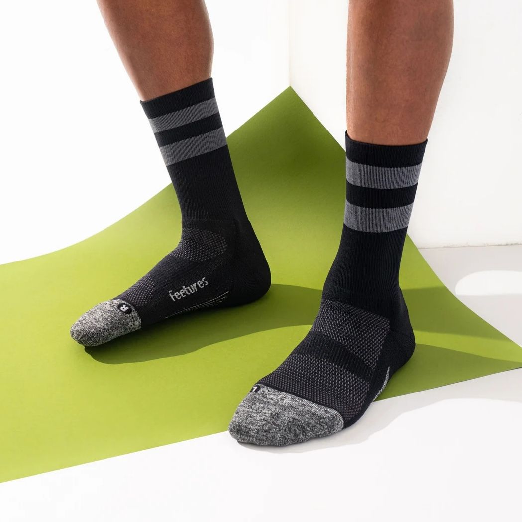 Feetures Elite LC Mini Crew Sock ถุงเท้าวิ่งคุณภาพสูงสำหรับใส่ออกกำลังกาย อีกระดับของความกระชับ เบา ระบายอากาศ เหงื่อ และความชื้น ให้คุณกระชับพร้อมความสบาย ด้วยระบบ Sock-Lock™ support system ทำให้ถุงเท้าคุณเป็นเสมือนเนื้อเดียวกับเท้าของคุณ รองรับกระแทกได้เต็มรูปแบบพร้อมความสบายเวลาใส่ จนเหมือนคุณไม่ได้ใส่อะไร ระบายความร้อนดีเยี่ยมหมดปัญหาเรื่องเหงื่อและกลิ่นอับ