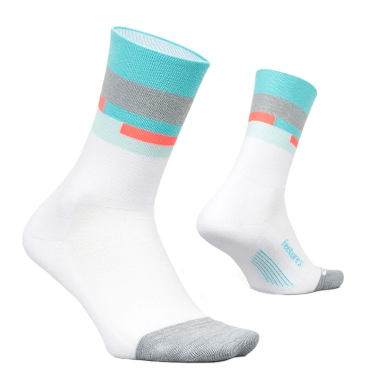 Feetures Elite LC Mini Crew Sock ถุงเท้าวิ่งคุณภาพสูงสำหรับใส่ออกกำลังกาย อีกระดับของความกระชับ เบา ระบายอากาศ เหงื่อ และความชื้น ให้คุณกระชับพร้อมความสบาย ด้วยระบบ Sock-Lock™ support system ทำให้ถุงเท้าคุณเป็นเสมือนเนื้อเดียวกับเท้าของคุณ รองรับกระแทกได้เต็มรูปแบบพร้อมความสบายเวลาใส่ จนเหมือนคุณไม่ได้ใส่อะไร ระบายความร้อนดีเยี่ยมหมดปัญหาเรื่องเหงื่อและกลิ่นอับ