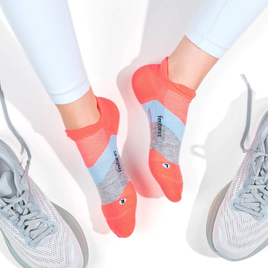 ถุงเท้า Feetures Elite Light Cushion Socks No Show เพื่อการวิ่งที่เต็มประสิทธิภาพ ถุงเท้าคุณภาพสูงสำหรับใส่ออกกำลังกาย อีกระดับของความกระชับ ความเบา ระบายอากาศ เหงื่อ และความชื่้น ให้คุณกระชับพร้อมความสบาย ด้วยระบบ Sock-Lock™ support system ทำให้ถุงเท้าคุณเป็นเสมือนเนื้อเดียวกับเท้าของคุณ รองรับกระแทกได้เต็มรูปแบบพร้อมความสบายเวลาใส่ จนเหมือนคุณไม่ได้ใส่อะไร ระบายความร้อนดีเยี่ยมหมดปัญหาเรื่องเหงื่อและกลิ่นอับถุงเท้าคุณภาพต่ำ จะไม่กระชับ ระบายความชื้นไม่ดี ทำให้เวลาวิ่ง จะเกิด การลื่นไถลในรองเท้า สีเท้าไปมาตลอดเวลา เมื่อรู้สึกว่าเจ็บก็เกิดแผลขึ้นแล้ว (Blister) Feeture กระชับ ไม่ลื่นไปมาในรองเท้า ระบายความชื้นได้ดี