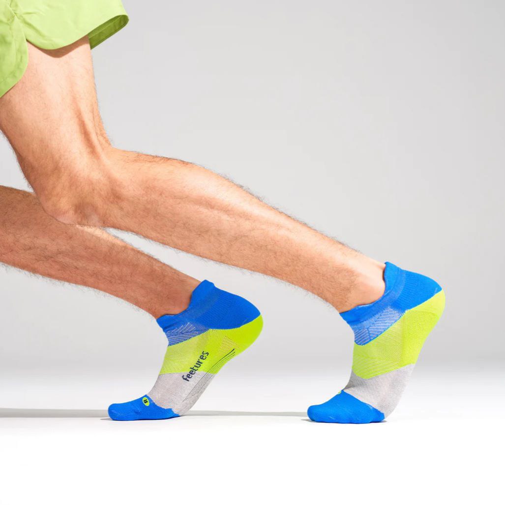 ถุงเท้า Feetures Elite Light Cushion Socks No Show เพื่อการวิ่งที่เต็มประสิทธิภาพ ถุงเท้าคุณภาพสูงสำหรับใส่ออกกำลังกาย อีกระดับของความกระชับ ความเบา ระบายอากาศ เหงื่อ และความชื่้น ให้คุณกระชับพร้อมความสบาย ด้วยระบบ Sock-Lock™ support system ทำให้ถุงเท้าคุณเป็นเสมือนเนื้อเดียวกับเท้าของคุณ รองรับกระแทกได้เต็มรูปแบบพร้อมความสบายเวลาใส่ จนเหมือนคุณไม่ได้ใส่อะไร ระบายความร้อนดีเยี่ยมหมดปัญหาเรื่องเหงื่อและกลิ่นอับถุงเท้าคุณภาพต่ำ จะไม่กระชับ ระบายความชื้นไม่ดี ทำให้เวลาวิ่ง จะเกิด การลื่นไถลในรองเท้า สีเท้าไปมาตลอดเวลา เมื่อรู้สึกว่าเจ็บก็เกิดแผลขึ้นแล้ว (Blister) Feeture กระชับ ไม่ลื่นไปมาในรองเท้า ระบายความชื้นได้ดี