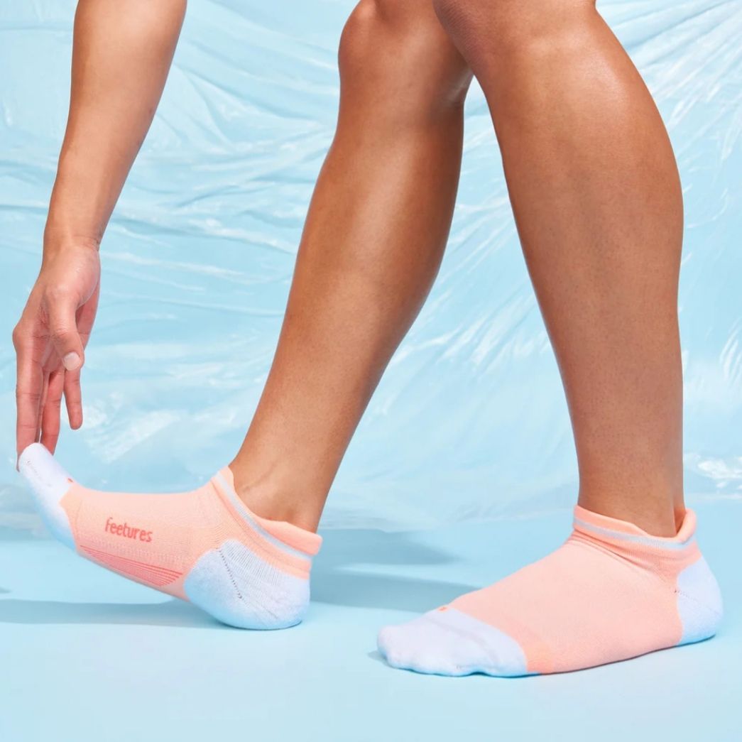 ถุงเท้า Feetures Elite Max Cushion Socks No Show สำหรับนักวิ่งที่กำลังมองหาความสะดวกสบายและการป้องกันสูงสุดซึ่งแตกต่างจากถุงเท้า Elite รุ่นอื่นๆ แนบกระชับ น้ำหนักเบา ระบายอากาศและความชื้นได้เป็นอย่างดี รองรับกระแทกได้เต็มรูปแบบพร้อมความสบายเวลาใส่ จนเหมือนคุณไม่ได้ใส่อะไร ระบายความร้อนดีเยี่ยมหมดปัญหาเรื่องเหงื่อและกลิ่นอับ