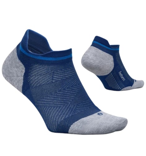 ถุงเท้า Feetures Elite Max Cushion Socks No Show สำหรับนักวิ่งที่กำลังมองหาความสะดวกสบายและการป้องกันสูงสุดซึ่งแตกต่างจากถุงเท้า Elite รุ่นอื่นๆ แนบกระชับ น้ำหนักเบา ระบายอากาศและความชื้นได้เป็นอย่างดี รองรับกระแทกได้เต็มรูปแบบพร้อมความสบายเวลาใส่ จนเหมือนคุณไม่ได้ใส่อะไร ระบายความร้อนดีเยี่ยมหมดปัญหาเรื่องเหงื่อและกลิ่นอับ