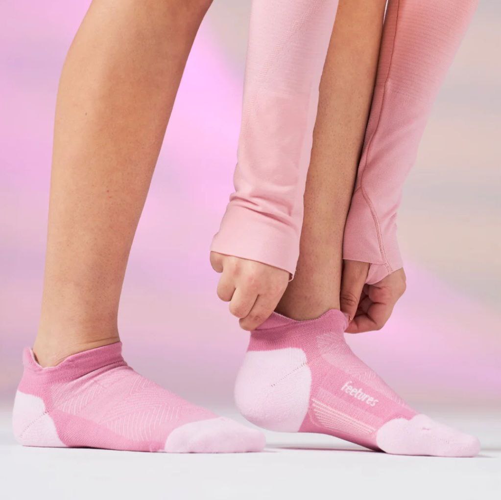 ถุงเท้า Feetures Elite Max Cushion Socks No Show สำหรับนักวิ่งที่กำลังมองหาความสะดวกสบายและการป้องกันสูงสุดซึ่งแตกต่างจากถุงเท้า Elite รุ่นอื่นๆ แนบกระชับ น้ำหนักเบา ระบายอากาศและความชื้นได้เป็นอย่างดี รองรับกระแทกได้เต็มรูปแบบพร้อมความสบายเวลาใส่ จนเหมือนคุณไม่ได้ใส่อะไร ระบายความร้อนดีเยี่ยมหมดปัญหาเรื่องเหงื่อและกลิ่นอับ