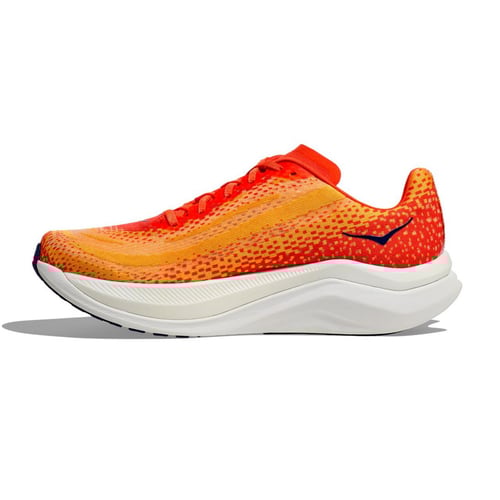 Hoka Mach X เป็นรองเท้าที่ถูกออกแบบมาเพื่อเพิ่มความเข้มข้นในการซ้อมสำหรับเตรียมตัวเพื่อแข่งขัน Hoka ตั้งใจปรับแต่งรองเท้า Mach X ให้มีประสิทธิภาพการรับแรงกระแทกและมีแรงส่งที่มากขึ้น โดยการใช้ PEBA Foam ที่มีความยืดหยุ่นที่สูงกว่า PEBA foam ที่ใช้ในรองเท้ารุ่น Carbon X3 ถึง 34% นั่นทำให้รองเท้า MACH X จะมีสำผัสพื้นและคืนตัวได้เร็วกว่านั่นเอง ทาให้ MACH X เหมาะสาหรับผู้ที่กำลังมองหาตัวช่วยเพื่อใช้ฝึกซ้อมในการพัฒนาความเร็วใกล้วันแข่ง หรือแม้แต่คนที่อยากได้รองเท้าสำหรับแข่งขัน Mach X ก็เป็นตัวเลือกที่ดี