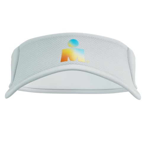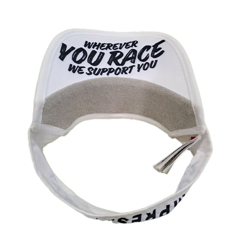 Race-oriented visor with mesh band for optimum ventilation during high exertion.