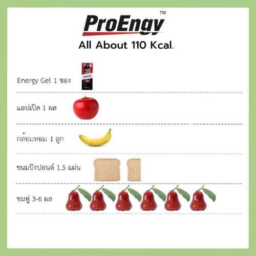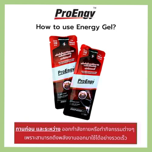 Energy Gel ให้พลังงานแก่ร่างกาย เพื่อใช้ในการออกกำลังกายและการทำกิจกรรมต่างๆ ได้ยาวนานขึ้น ช่วยให้ร่างกายฟื้นฟูได้อย่าง รวดเร็ว ลดอาการเมื่อยล้า และอาการบาดเจ็บที่อาจเกิดขึ้นตามมาภายหลังการออกกำลังกาย