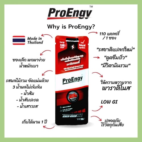 Energy Gel เป็นเครื่องดื่มพลังงานคุณภาพสูง ประกอบไปด้วยสารอาหารจากธรรมชาติ 100% (High grade organic maltodextrin) ทำให้ร่างกายสามารถดูดซึมได้ง่าย และเปลี่ยนเป็นพลังงานให้แก่ร่างกายอย่างรวดเร็ว