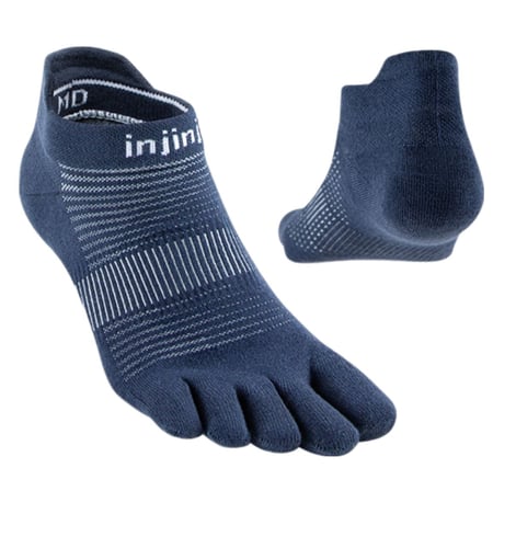 A low-bulk performance sock in our most versatile weight – great for running and racing all year round. Each toe is protected – no skin-on-skin contact – to prevent blisters. And the patented design frees your toes to splay naturally on impact and move independently on uneven terrain. The streamlined no-show length has a protective tab at the heel to keep it from sliding down, mesh at the top works with the COOLMAX® fibers to keep your feet dry and comfortable, and integrated arch support is built in.