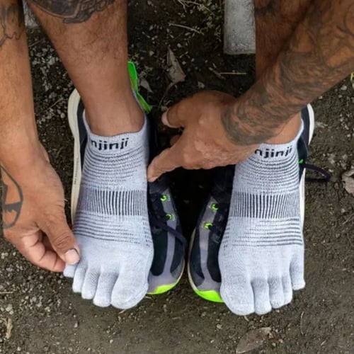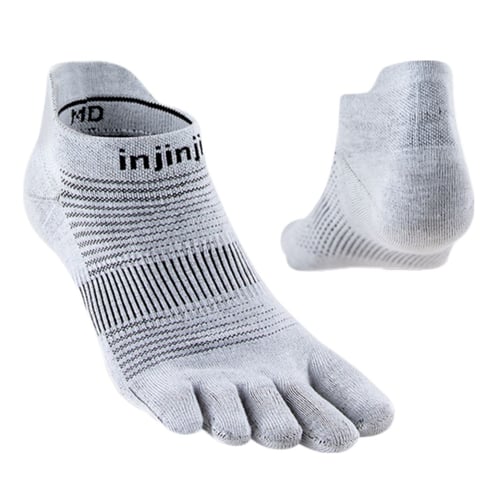 อินจินจิ ถุงเท้าห้านิ้ว ความหนาปกติ Original Weight ความยาวเท่าข้อเท้า No Show เนื้อผ้า COOLMAX ทอพิเศษช่วยให้เท้าแห้งสบาย และเย็น ลดปัญหาการเสียดสี เหมาะกับวิ่งทุกระยะจนถึงระยะมาราธอน