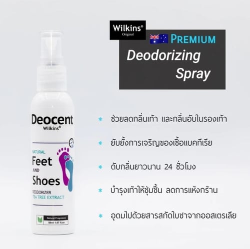Deocent ใบชาสกัดจากออสเตเรีย ซึ่งมีงานวิจัยรองรับมากมาย สามารถยับยั้งการเจริญของเชื้อแบคทีเรียซึ่งเป็นสาเหตุของกลิ่นเท้าได้เป็นอย่างดี