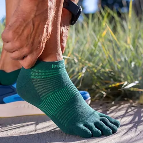 อินจินจิ ถุงเท้าห้านิ้วแบบบาง Lightweight ความยาวเท่าข้อเท้า เนื้อผ้า COOLMAX ทอพิเศษช่วยให้เท้าแห้งสบาย และเย็น ลดปัญหาการเสียดสี เหมาะกับวิ่งทุกระยะจนถึงระยะมาราธอน Product Details Our lowest-bulk sock is built for all types of runs on all kinds of surfaces. Our unique five-toe performance design eliminates the friction that can cause blisters, and keeps your toes free for better feel and natural fit on uneven terrain. Soft, durable seamless construction creates a supportive, secure fit, a mesh top and COOLMAX® fibers help keep feet dry and cool, and a band under the arch provides support and stability. The no-show length rests below the ankle and features a heel tab to protect against chafing and keep your socks from sliding into your shoes.