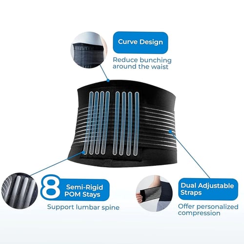 - ช่วยพยุงหลังอย่างพอเหมาะ และสวมใส่สบายช่วยบรรเทาอาการปวด หลัง หรือลดโอกาสการเกิดบาดเจ็บที่หลัง หรือใช้เพื่อพยุงกล้ามเนื้อ กระดูกสันหลังช่วงล่าง เมื่อต้องยกของหนัก